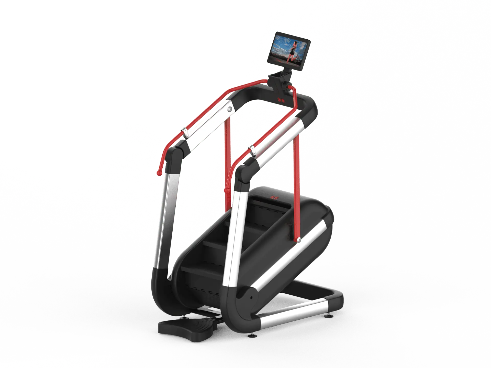 YHLT-7000商用楼梯机,时尚前卫的外观设计,框架采用3mm厚的Q235面包管焊接而成,整体坚固耐用。器材表面采用双层烤漆工艺。丰富多彩的控制台,无线互联网连接,允许设施监控有价值的资产数据,并轻松进行控制台软件更新。