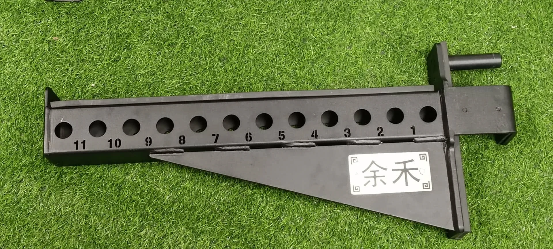 余禾YHSD-7P08 安全臂设计,采用75*75*3的方管做为主架管材。二端25的固定圆棒,卡扣内部装有塑胶板,可以防止刮伤立柱的漆面。管面固定有缓冲条,可以减小杠铃杆的冲击和保护杠铃杆。U形座背部限位拉销,方便快捷的固定挂钩架,使其更加稳定和安全。304不锈钢logo,可以按客户要求自定义设计。